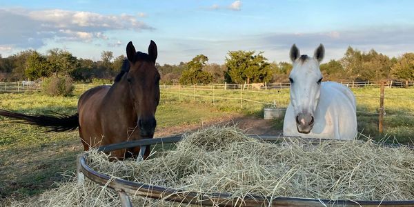 Horses live in groups of 2-3 on 1.5 acre pastures